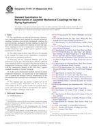1.1 This specification covers the evaluating of the performance of heavy duty shielded couplings to join hubless cast iron soil pipe and fittings. 1.2 Couplings covered by this standard shall have nominal dimensions as found in Table 1 and Fig. 1 of this standard. 1.3 The values stated in inch-pound units are to be regarded as standard. The values given in parentheses are mathematical conversions to SI units that are provided for information only and are not considered standard. 1.4 The following precautionary caveat pertains only to the test method portion, Section 7, of this specification. This standard does not purport to address all of the safety concerns, if any, associated with its use. It is the responsibility of the user of this standard to establish appropriate safety and health practices and determine the applicability of regulatory limitations prior to use. |