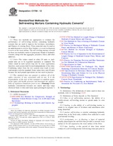 The test methods in this standard are used to evaluate freshly mixed properties such as the initial flow, flow retention, and healing time as well as hardened properties such as compressive strength, setting time, and flexural strength, of self-leveling mortars. Tests are conducted under standardized conditions for comparative purposes and results are not intended to be representative of performance under field conditions. |