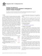 This test method can be used to evaluate unused mixed bed ion exchange materials for conformance to specifications. When a representative sample of the mixed bed can be obtained from an operating unit, this test method can be used to evaluate the regeneration efficiency by comparison with the same data obtained with new material from the same manufactured lots, or retained samples of the in-place products. This test method provides for the calculation of capacity in terms of the volume of water treated to a conductivity end point. The test method as written assumes that the cation exchange material has been regenerated to the hydrogen form with acid and the anion exchange material has been regenerated with alkali to the hydroxide or free-base form. In certain applications a cation exchange material in the potassium, ammonium, or other monovalent form may be encountered. Such materials may be tested following this procedure using Test Water A (Test Methods D 1782) as the influent and substituting the hardness end point (Test Methods D 1782) for the end points prescribed herein. In most cases the product tested will be properly mixed and will contain the correct proportions of anion and cation exchange materials. However, if the pH as well as the conductivity of the effluent is measured, the test method will indicate which of the components is present in excess; an acid effluent at breakthrough indicating an excess of regenerated cation exchange groups and an alkaline effluent an excess of regenerated anion exchange groups. In such cases the volumes of the two components obtained in the final backwash will indicate whether this imbalance arises from improper regeneration or from an improper ratio of the two components. It should be noted, however, that not all units are charged with a balanced ratio of anion-exchanging and cation-exchanging groups. Hence, wherever possible, a field sample should be evaluated in comparison with a retained sample of the original charge. This test method provides for the calculation of capacity on either a wet weight basis or a volume basis. Although such materials are normally bought and sold in terms of cubic feet, they are actually packaged in wet pounds. Therefore, it is the capacity on a wet weight basis that is directly correlatable to the amount of material in a given shipment. Calculation of a volume capacity is based on the exhausted, separated volume of the components after backwashing and resettling the bed. This volume is chosen because it is difficult, if not impossible, to pack a sample of regenerated mixed bed material in a small-diameter column reproducibly. This test method may be used to test mixed bed resin cartridges. In such cases the flow rate of test water and the frequency of sampling must be varied to compensate for the approximate volume of resin in the test sample. The test as written assumes a resin volume of approximately 330 mL. |