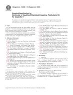 The magnitude of the changes in the electrical properties of the insulating oil are of importance in determining the contamination of the oil by the test specimen. Physical and chemical changes in the oil such as color, interfacial tension and acidity, also indicate solubility or other adverse effects of the test specimen on the oil. Physical changes of the test specimen such as hardness, swelling, and discoloration show the effect of the oil on the test specimen and are used to determine the suitability of the material for use in insulating oil. A material meeting the criteria recommended does not necessarily indicate suitability for use in electrical equipment. Other properties must also be considered. Additionally, certain materials containing additives may meet the requirements of these test methods, yet be unsatisfactory when subjected to longer term evaluations. Examples of such materials are polyvinyl chloride (PVC) based compounds, nylon and elastomeric compounds. |
