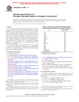 1.1 This specification covers the chemistry requirements for wrought stainless steels used for the manufacture of surgical instruments. The data contained in Tables 1-4 of this specification, including typical hardness values, common heat treating cycles, and examples of selected stainless steels that have been used for surgical instruments, is provided for reference only. Mechanical property requirements, heat treating requirements, hardness requirements and all other requirements except chemistry are governed by the appropriate material standards as referenced below or as agreed upon between purchaser and supplier. 1.2 The values stated in inch-pound units are to be regarded as standard. The values given in parentheses are mathematical conversions to SI units that are provided for information only and are not considered standard. |