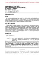 This method is for determining the carbon structure of C7 and lower boiling compounds in debutanized olefinic samples. Complete hydrogenation is accomplished directly in the chromatograph injection system, enabling a carbon structure determination to be made. The limit of detection for any single carbon structure is 0.1 wt-%. Quantitative results are obtained through the use of an internal standard. |